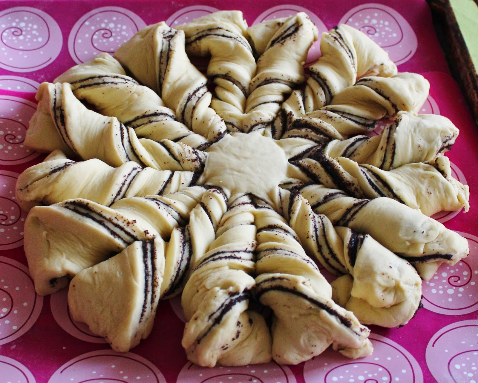 Die einzelnen Teile 4 mal verdrehen. Im vorgeheizten Backofen bei 180° 20-25 Min. backen.